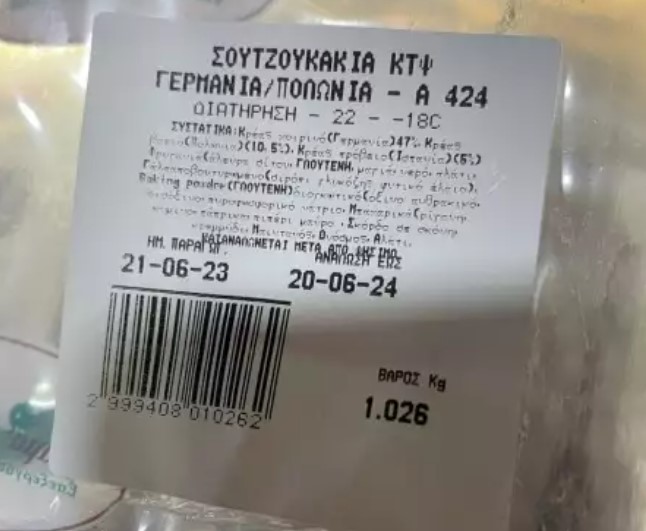 Η δειγματοληψία έγινε σε κατεψυγμένα παρασκευασμάτα κρέατος με τα στοιχεία: ΣΟΥΤΖΟΥΚΑΚΙΑ ΚΑΤΕΨΥΓΜΕΝΑ ΓΕΡΜΑΝΙΑ/ΠΟΛΩΝΙΑ – Α 424 με ημερομηνία ανάλωσης 20-06-24 και ημερομηνία παραγωγής 21-06-23 που παράγονται από την εταιρεία με διακριτικό τίτλο «Κτήμα Αλιστράτης».