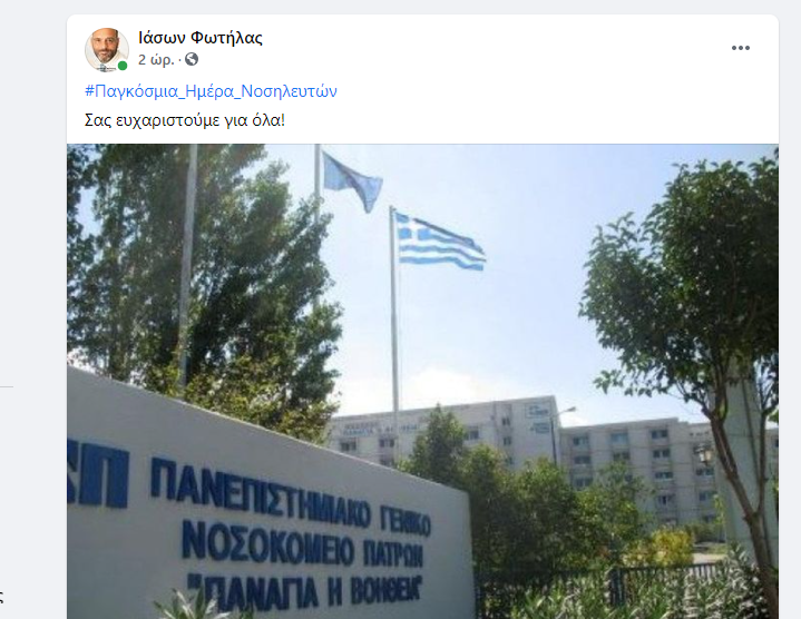 Παγκόσμια μέρα νοσηλευτών σήμερα, 12 Μαϊου, και ο βουλευτής Αχαϊας της ΝΔ, Ιάσονας Φωτήλας, έδειξε την ευαισθησία του προς τους αγωνιστές του τελευταίο χρόνου, προς τους ήρωες των Νοσοκομείων και εκτός αυτών, που δίνουν και τη ζωή τους όλο αυτό το διάστημα.