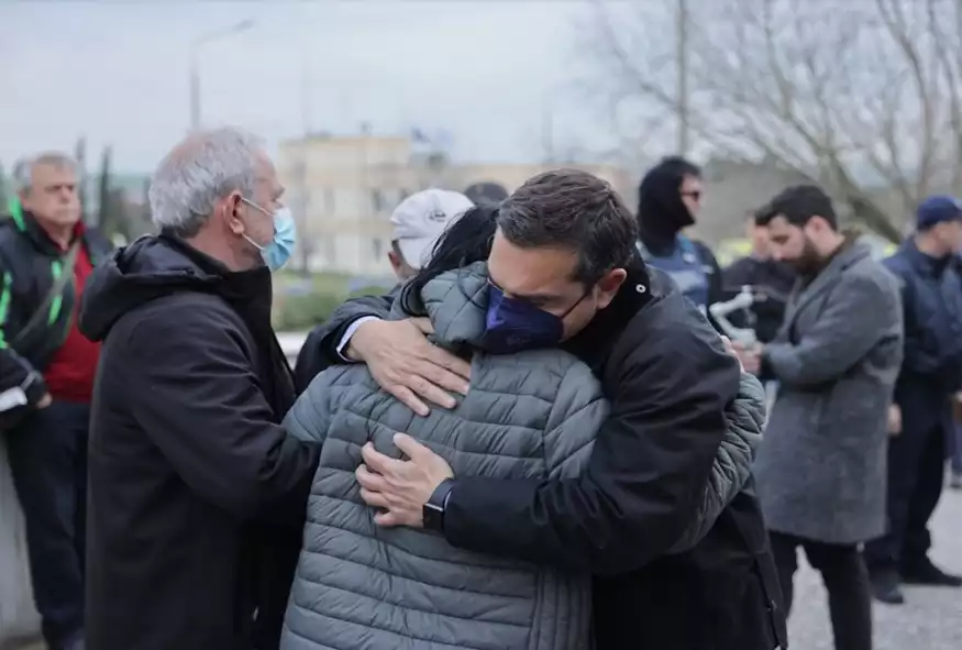 Φθάνοντας στο νοσοκομείο της Λάρισας ο κ. Τσίπρας συνάντησε συγγενείς τραυματιών, αλλά και συγγενείς και γονείς θυμάτων, στους οποίους εξέφρασε τα βαθιά του συλλυπητήρια για την τραγική απώλεια.
