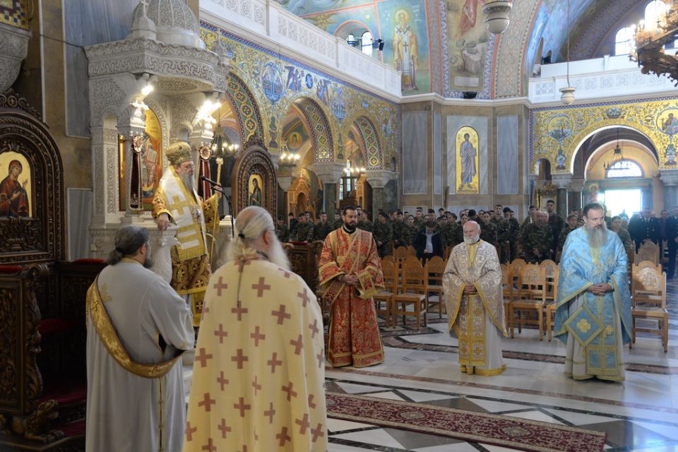 Ἐν συνεχείᾳ μίλησε στούς Στρατηγούς, Ἀξιωματικούς, Ὑπαξιωματικούς καί τό προσωπικό τῶν Ἐνόπλων Δυνάμεων καί τῶν Σωμάτων Ἀσφαλείας, πού ἐκκλησιάστηκαν στόν Ἱερό Ναό καί ἀφοῦ τούς εὐχήθηκε καί τούς ἐπήνεσε γιά τήν προσφορά τους στήν Πατρίδα μας καί στήν κοινωνία μας.