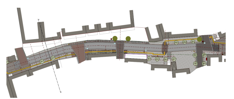 Με την μελέτη εξασφαλίζεται ένας πεζόδρομος κυμαινόμενου πλάτους στο κέντρο του οικισμού, η ανεμπόδιστη κίνηση των πεζών, η ελεγχόμενη ήπια κίνηση των οχημάτων, προβλέπονται πεζοδρόμια ενώ εξασφαλίζονται και οι κάθετες οδεύσεις από και προς τον πεζόδρομο.