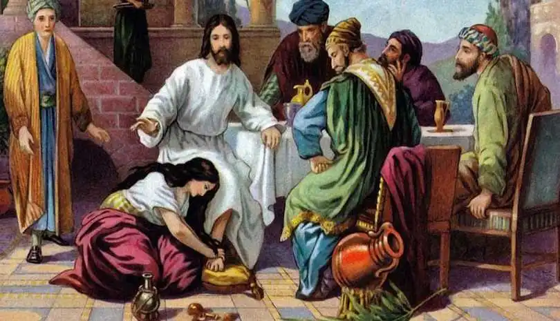 της κεφαλής μου, κλαίουσα, τα πόδια θα σφουγγίσω.
