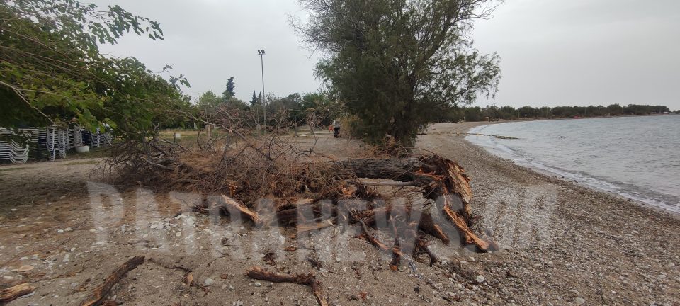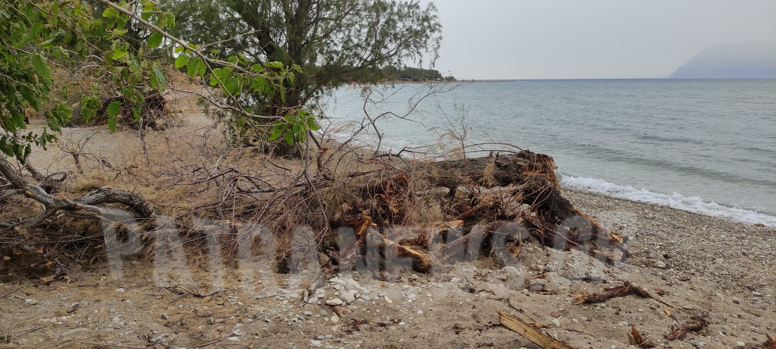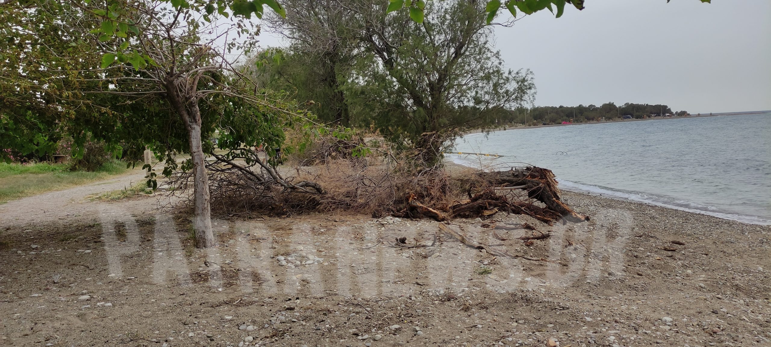 Οι θυελλώδεις άνεμοι των τελευταίων εβδομάδων, προκάλεσαν το ξερίζωμα ενός τεράστιου δέντρου, το οποίο βρισκόταν δίπλα στην παραλία.