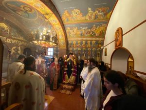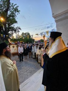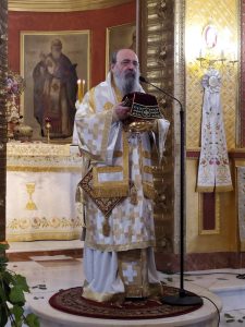 Ἀνήμερα ἐτέλεσε τήν Θεία Λειτουργία στόν Ἱερό Ναό τοῦ Ἁγίου Νικολάου Σαραβαλίου καί προέστη τῆς Ἱερᾶς Λιτανείας καί στόν μεθέορτο Ἑσπερινό προέστη τῆς Ἀκολουθίας στήν Ἱερά Μονή Ἁγίου Νικολάου Μπάλα, κηρύξας σέ ὃλες τίς ἱερές Ἀκολουθίες τόν θεῖο λόγο.