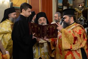 Ἐπί δέ τούτοις τόν Κύριον εὐλογοῦντες, μετά δέους καί ἀφάτου χαρᾶς διακηρύσσομεν: