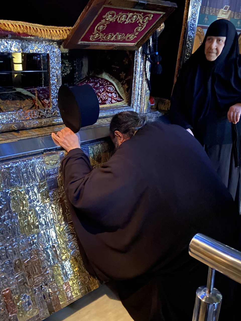 Στο Ηγουμενείο την μονής ο Θεοφιλέστατος αντάλλαξε τον Αναστάσιμο χαιρετισμό με την Καθηγουμένη  Γερόντισσα Κασσιανή και τους εφημερίους Αρχιμ. π. Μάρκο και π. Γεράσιμο.
