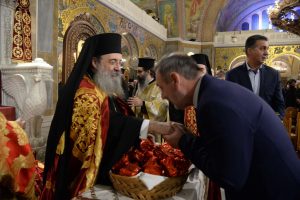 Μετά τό πέρας τοῦ Ἑσπερινοῦ, ὁ Σεβασμιώτατος εὐλόγησε τήν Βασιλόπιττα τῆς Ἱερᾶς Μητροπόλεως, εὐχηθείς ἀπό καρδίας στόν Ἱερό Κλῆρο καί στόν εὐσεβῆ Πατραϊκό Λαό, γιά τό νέον ἒτος.