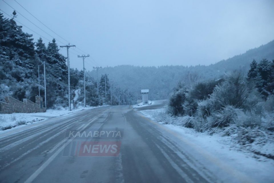 Χιονόπτωση τη νύχτα στο κύμα κακοκαιρίας «Διομήδης». Κατά τη διάρκεια της νύχτας σημειώθηκαν σφοδρές χιονοπτώσεις στα ορεινά, ενώ όπως ενημέρωσε ο επικεφαλής του αυτοτελούς γραφείου Πολιτικής Προστασίας Καλαβρύτων Αλέξης Λεχουρίτης στην Πούντας – Καλαβρύτων αλυσίδες ήταν υποχρεωτικές.