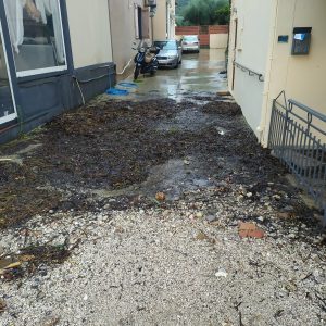 Απροσπέλαστος είναι ο δρόμος κατά μήκος όλης της παραλίας. Η θάλασσα ενώθηκε με τις αυλές των σπιτιών και των καταστημάτων.