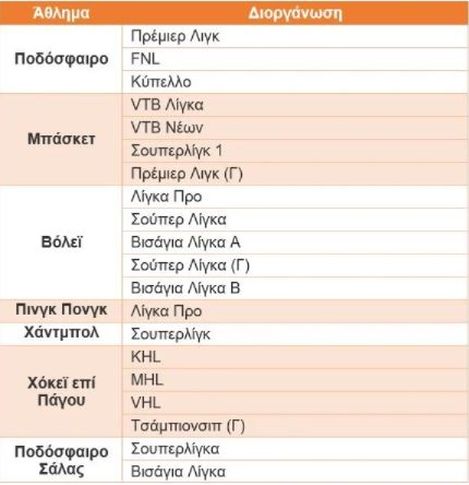 Συγκεκριμένα, οι αγώνες των παρακάτω ρωσικών διοργανώσεων δεν θα διατίθενται προς στοιχηματισμό είτε μέσω του Pamestoixima.gr, είτε μέσω του δικτύου των Καταστημάτων ΟΠΑΠ.