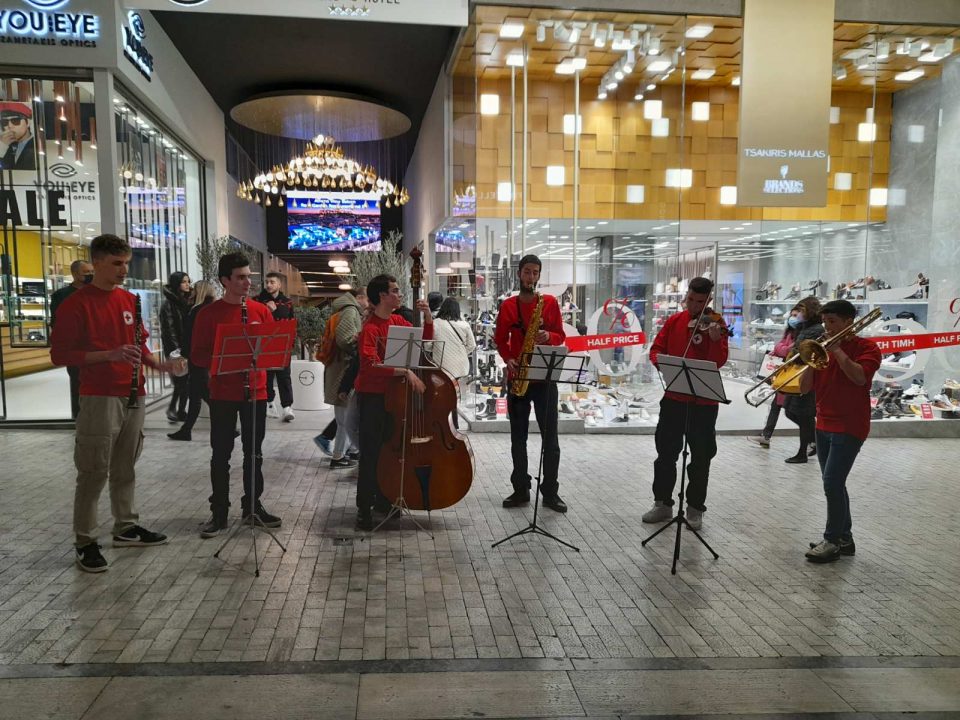 Η πρώτη δημόσια εμφάνιση του Μουσικού Συνόλου Νέων του Τομέα Νεότητας του Ελληνικού Ερυθρού Σταυρού πραγματοποιήθηκε το απόγευμα του Σαββάτου (19/2), σε κεντρικό σημείο της οδού Ερμού, στο κέντρο της Αθήνας. Οι εθελοντές του Τομέα Νεότητας ταξίδεψαν το κοινό με κλασικά ελληνικά και ξένα κομμάτια, κερδίζοντας επάξια το ζεστό χειροκρότημα του κόσμου.