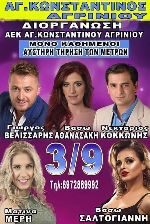Μεγάλη…πυρκαγιά αναμένεται απόψε στον Αγιο Κωνσταντίνο Αγρινίου! Ο άρχοντας πάει Αγρίνιο απόψε και είναι σίγουρο ότι θα βάλει φωτιές! Οπως μόνο αυτός ξέρει. Ο Γιώργος Βελισσάρης θα γίνει και απόψε, Παρασκευή 3 Σεπτεμβρίου, ο …εμπρηστής που θα κάψει καρδιές, που θα απογειώσει ένα σωρό κόσμο.