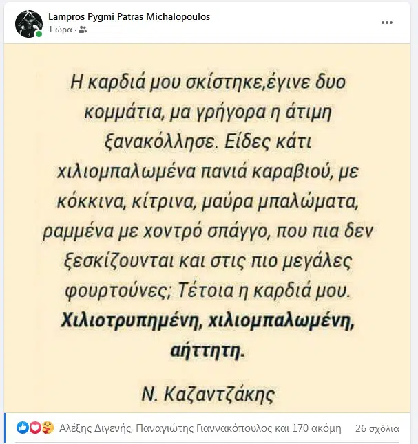 Ο Λάμπρος Μιχαλόπουλος χρησιμοποίησε ένα απόφθεγμα του Νίκου Καζαντζάκη.