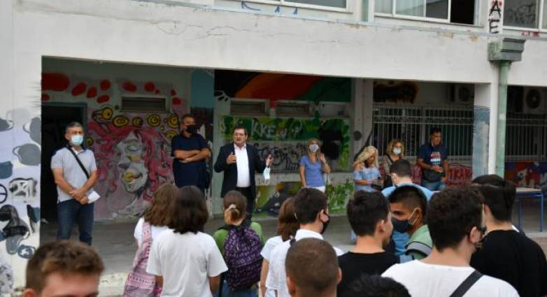 Ο Δήμαρχος Πατρέων, Κώστας Πελετίδης, και ο Αντιδήμαρχος Παιδείας και Αθλητισμού, Τάκης Πετρόπουλος, παραβρέθηκαν σήμερα το πρωί στην τελετή έναρξης της σχολικής χρονιάς, στο 2ο ΕΠΑΛ Πάτρας (Αγίας Σοφίας).
