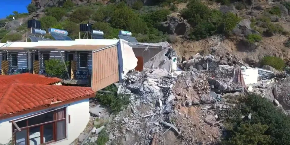 «Δεν είχαμε σημάδια ζωής» εξηγεί. «Όταν φτάσαμε εκεί και είδαμε το βουνό να έχει πέσει πάνω στο δωμάτιο αντιμετωπίσαμε μια πολύ δύσκολη κατάσταση. Το τουριστικό διαμέρισμα είχε δυο δωμάτια. Στο ένα δωμάτιο έμεναν ο 51χρονος σύζυγος μαζί με το παιδί και στο άλλο έμενε η γυναίκα. Το πρώτο δωμάτιο είχε πλακωθεί από τον πεσμένο βράχο κατά το ήμισυ, γι’ αυτό σώθηκαν ο πατέρας με το γιο και από εκεί ξεκινήσαμε».