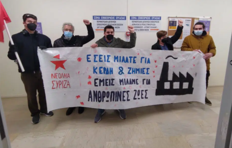 Παράσταση διαμαρτυρίας στο ΣΕΠΕ για τον θάνατο του 22χρονου εργάτη στη ΒΙΠΕ έκανε η Νεολαία του ΣΥΡΙΖΑ Αχαΐας.