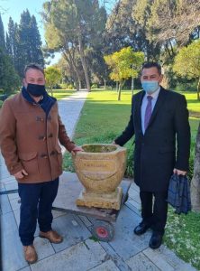 Έπειτα από συνεργασία της Περιφέρειας Δυτικής Ελλάδας και της τοπικής κοινότητας ο Aντιπεριφερειάρχης με τον εκπρόσωπο της Τ.Κ. Καυκωνίας, Γιάννη Ρηγόπουλο, μετέφεραν την πέτρινη γλάστρα στο Προεδρικό Μέγαρο.