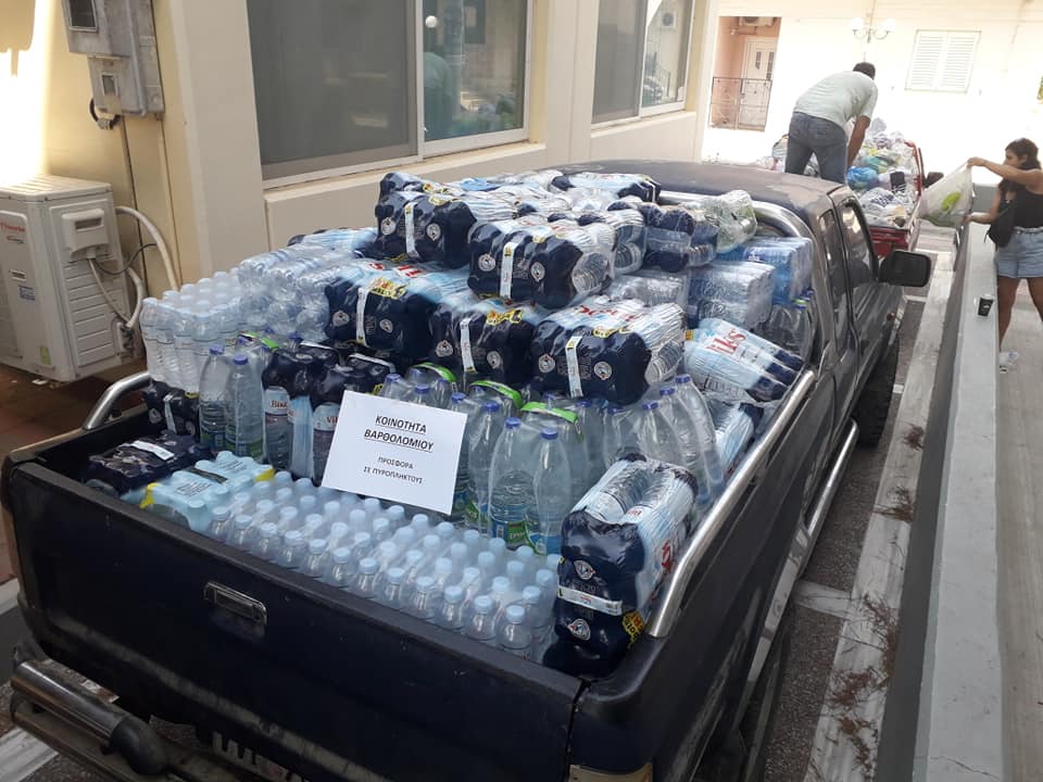 Κατόπιν έκκλησης της Κοινότητας Βαρθολομιού στους κατοίκους της, παραδόθηκαν τα είδη πρώτης ανάγκης που συγκεντρώθηκαν για τα πυρόπληκτα χωριά της Ολυμπίας.