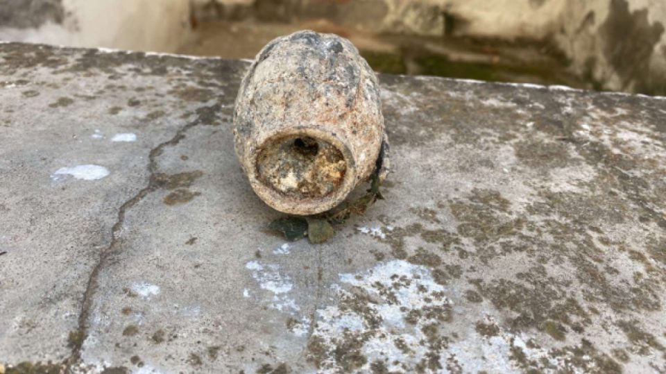 Εντοπίστηκε από πολίτη χθες το πρωί, σε περιοχή της Αιγιαλείας, κατά τη διάρκεια εργασιών σε υπόγειο της οικίας του, μια χειροβομβίδα πιθανόν κατοχικής περιόδου.