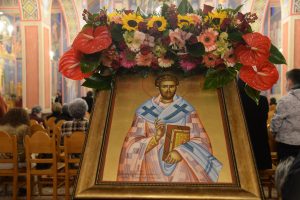 Ἐπίκεντρο τοῦ ἑορτασμοῦ, ὁ περικαλλής ἱερός Ναός τοῦ ἐνδόξου Ἱερομάρτυρος, στήν εἲσοδο τῆς πόλεως.
