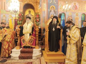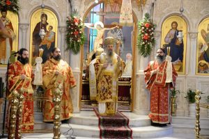 Στίς ἱερές Ἀκολουθίες τόσον τοῦ Ἑσπερινοῦ ὃσο καί τοῦ Ὂρθρου καί τῆς Θείας Λειτουργίας, προέστη ὁ Θεοφιλέστατος Ἐπίσκοπος Κερνίτσης κ. Χρύσανθος, ὁ ὁποῖος ἐκήρυξε τόν θεῖον λόγον καί τήν παραμονή καί ἀνήμερα, ἐν πληθούσῃ Ἐκκλησίᾳ.