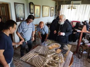 Πέρασε την είσοδο τής Μονής το Ασημένιο ένδυμα της για νά γίνει η όλη διαδικασία τοποθέτησης στην σεπτή εικόνα της.
