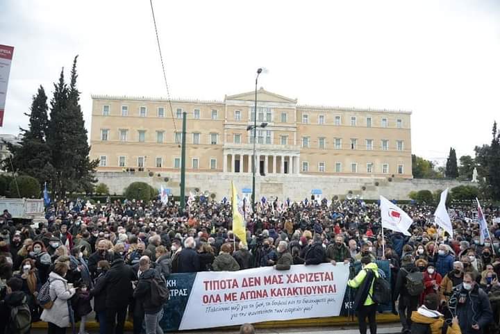 Με αγωνιστικά συνθήματα και χειροκροτήματα υποδέχτηκαν τα συνδικάτα και οι φορείς της Αττικής, στο Σύνταγμα, το Δήμαρχο Πατρέων, Κώστα Πελετίδη, τη μεγάλη πορεία αγώνα και διεκδίκησης που ξεκίνησε από την Πάτρα με απαίτηση την ικανοποίηση των αιτημάτων της πόλης και όλου του λαού.