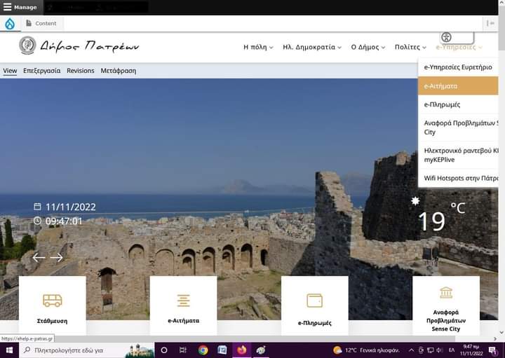 ✅ ΠΑΡΟΧΗ ΗΛΕΚΤΡΟΝΙΚΩΝ ΥΠΗΡΕΣΙΩΝ ΠΡΟΣ ΤΟΥΣ ΔΗΜΟΤΕΣ ΜΕΣΩ ΤΗΣ ΕΝΟΤΗΤΑΣ e-ΑΙΤΗΜΑΤΑ ΣΤΗΝ ΔΙΑΔΙΚΤΥΑΚΗ ΣΕΛΙΔΑ ΤΟΥ ΔΗΜΟΥ ΠΑΤΡΕΩΝ