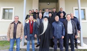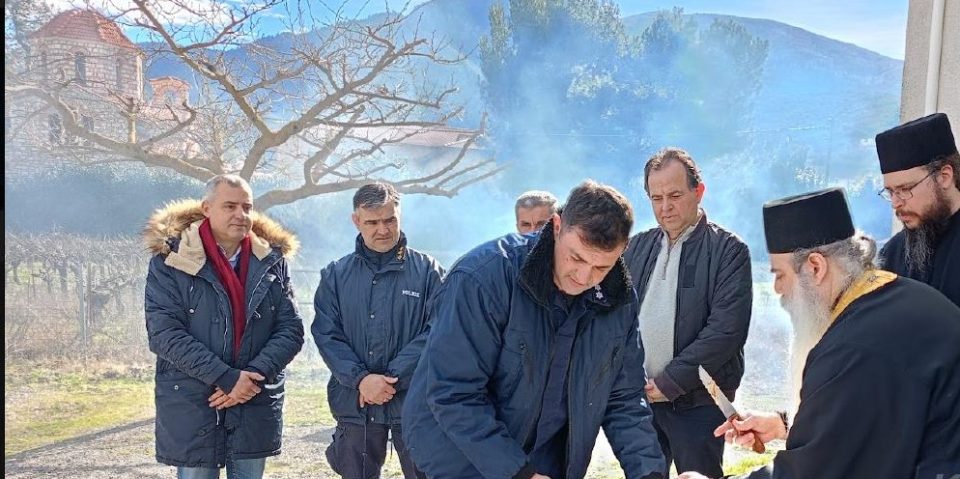 Την βασιλόπιτα ευλόγησε ο Ηγούμενος της Ιεράς Μονής Αγίας Λαύρας π. Ευσέβιος, συνοδεία του Αρχιμανδρίτου Φιλαρέτου.