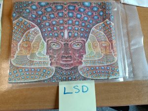 στ) μια (01) χάρτινη καρτέλα, η οποία περιείχε πεντακόσια (500) τεμάχια εμποτισμένα με τη ναρκωτική ουσία LSD.