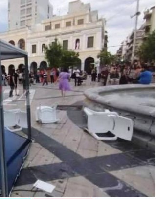 Πάλι επεισόδια κατά της ΝΔ. Έσπασαν το εκλογικό περίπτερο της Νέας Δημοκρατίας στην πλατεία Γεωργίου στην Πάτρα.