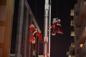 Γιορτινές μελωδίες έπαιξε έξω από την «Κιβωτό της Αγάπης», την Πέμπτη 29 Δεκέμβρη, το απόγευμα η Μουσική του Δήμου, ενώ μέλη της ορειβατικής ομάδας έρευνας και διάσωσης της 6ης ΕΜΑΚ Πάτρας, σε ρόλο Αϊ-Βασίλη «κατέβηκαν», με κλιμακοφόρο όχημα της Πυροσβεστικής και μοίρασαν δώρα σε τρόφιμους και εργαζόμενους.