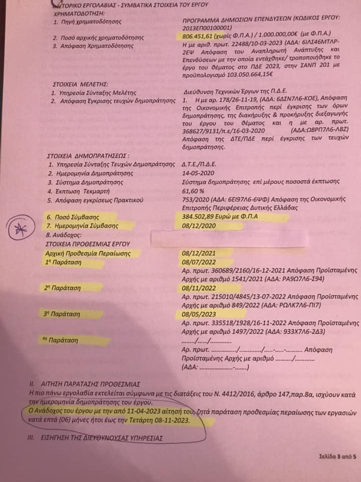 Έχουν δώσει τρεις παρατάσεις. Ο εργολάβος ζητάει με επιστολή του (11/4/2023) 4η παράταση έως 8/11/ 2023 και του δίνουν παράταση έως 7/7/2023. Το έργο παραδόθηκε; Εσείς τι λέτε;