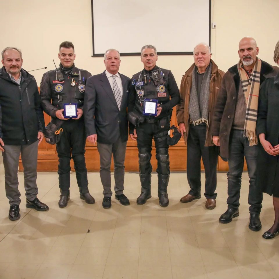 Από την κοπή της βασιλόπιτας στον Εμπορικό σύλλογο Πατρών με τιμώμενο το μητροπολίτη Πατρών Χρυσόστομο και την βράβευση του ΕΚΑΒ στα πρόσωπα των διασωστών μοτοσυκλετιστων.