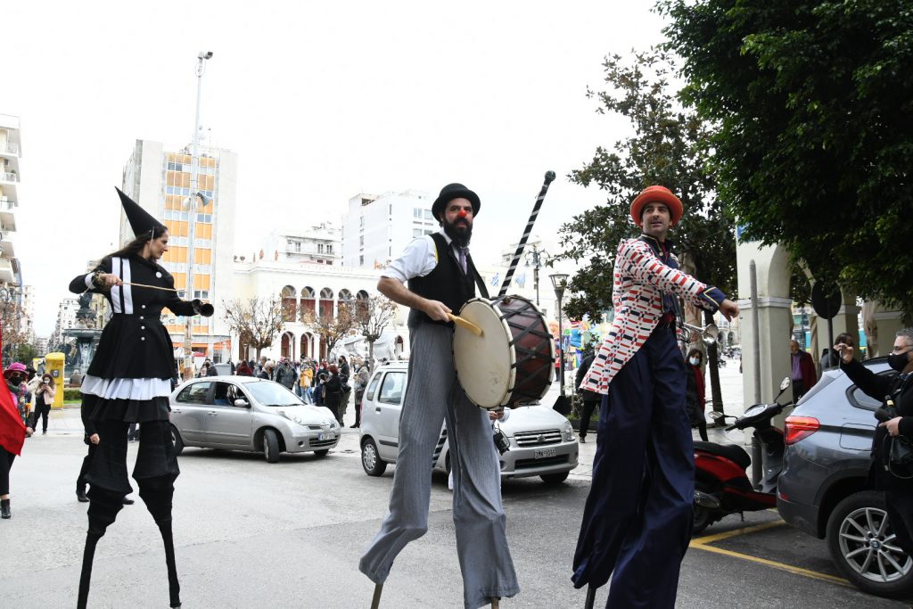 Στο μεταξύ Καρναβαλοθεατρικές κινούμενες μορφές ξεκινώντας στις 11πμ από την πλατεία Γεωργίου Α΄ και ακολουθώντας τις οδούς Γεροκωστοπούλου-Ρήγα Φεραίου-Παντανάσσης-Μαιζώνος θα φτάσουν στις 11.45π.μ. στο Δημαρχείο Πατρών προκαλώντας το ενδιαφέρον και τα βλέμματα των περαστικών.