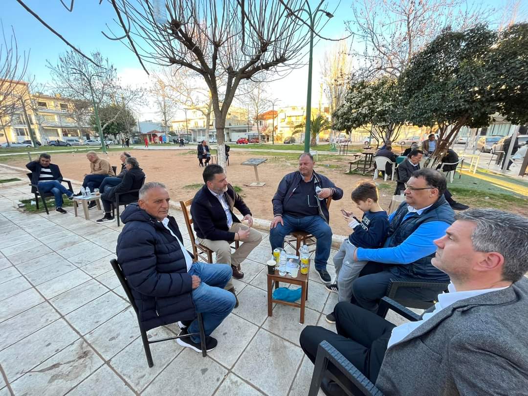 Βρέθηκε στη πλατεία της συνοικίας και είχε την ευκαιρία να συζητήσει μαζί τους, να πιουν τον καφέ τους και να αφουγκραστει τα προβλήματα της καθημερινότητας τους.