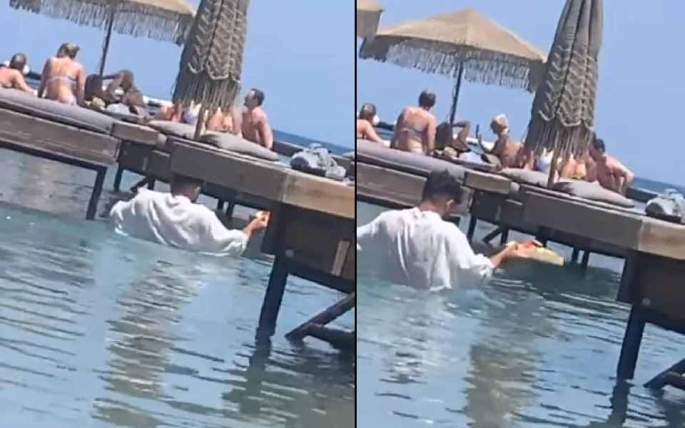 Οι εικόνες με τον εργαζόμενο σε beach bar της Ρόδου να περπατάει μέσα στο νερό, σχεδόν κολυμπώντας, για να παραδώσει παραγγελία σε αυτοσχέδιες κατασκευές πάνω στο κύμα, κάνουν τον γύρο του Ίντερνετ, ντροπιάζουν και προβληματίζουν.