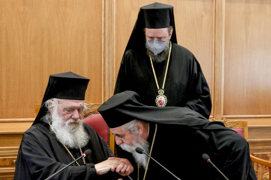 Συνήλθε η Ιερά Σύνοδος της Ιεραρχίας της Εκκλησίας της Ελλάδος, υπό την Προεδρία του Μακαριωτάτου Αρχιεπισκόπου Αθηνών και πάσης Ελλάδος κ. Ιερωνύμου, στην Αίθουσα Συνεδριών της Ιεράς Συνόδου της Ιεραρχίας.