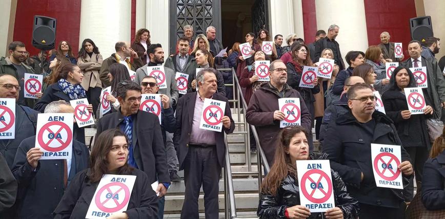 Κατά τις ημέρες των άνω συγκεντρώσεων διαμαρτυρίας η Ολομέλεια προτείνει στους Δικηγορικούς Συλλόγους της Χώρας την καθολική αποχή των μελών τους από τα καθήκοντά τους.»-
