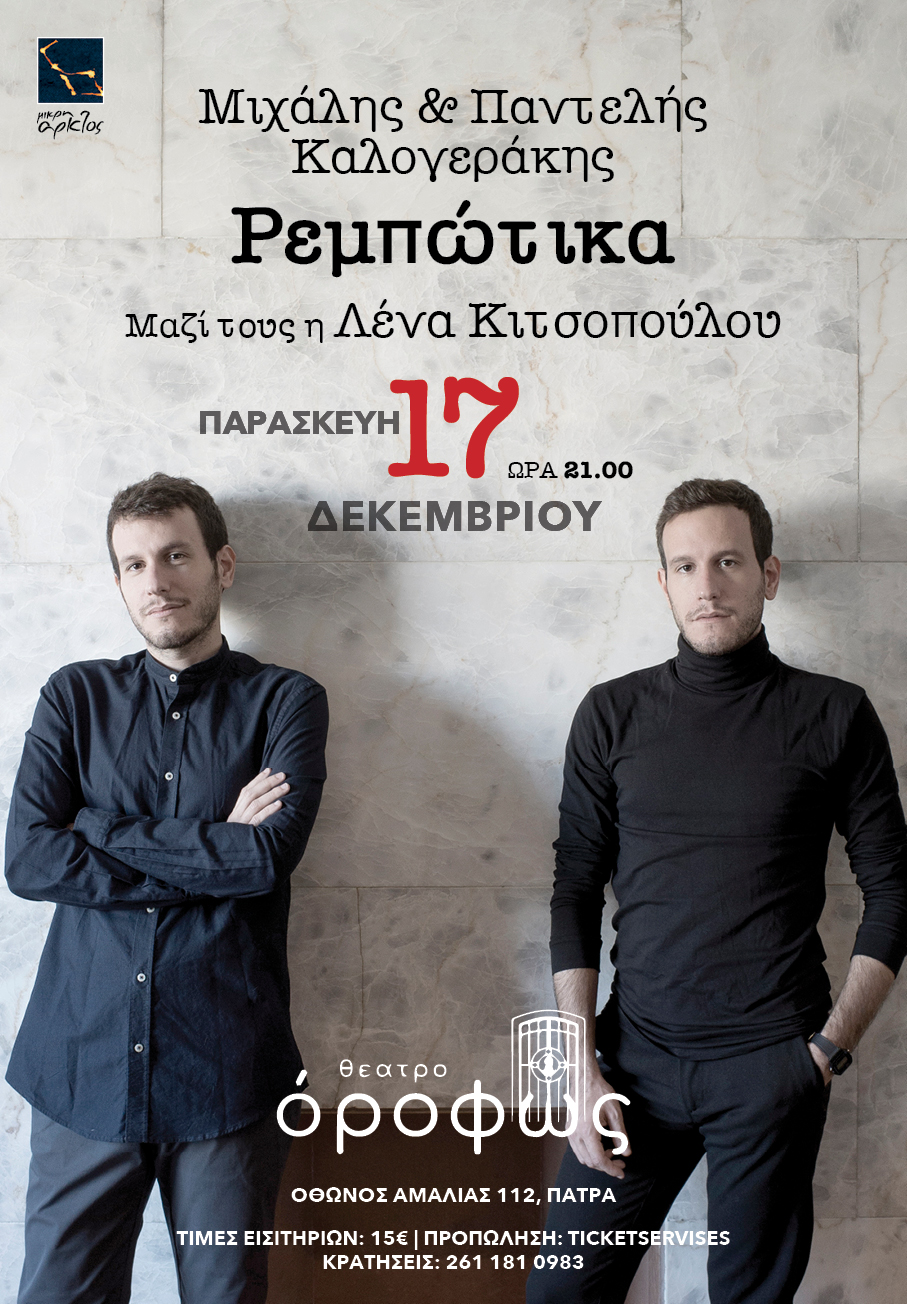 Ρεμπώτικα: οι Μιχάλης & Παντελής Καλογεράκης προτείνουν τη δημιουργική συνύπαρξη του ρεμπέτικου κόσμου του Ρεμπώ με τον ποιητικό κόσμο του ρεμπέτικου.